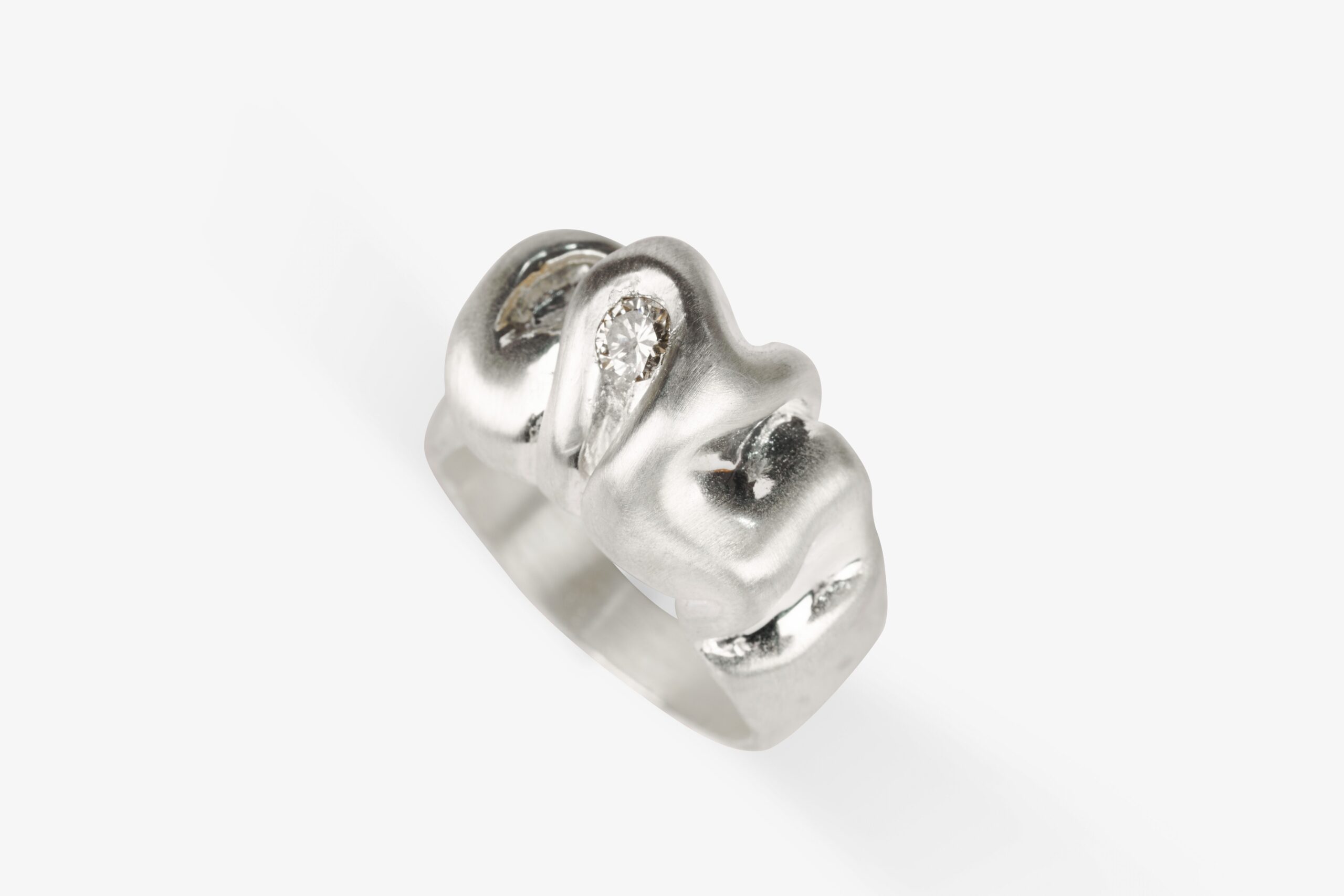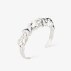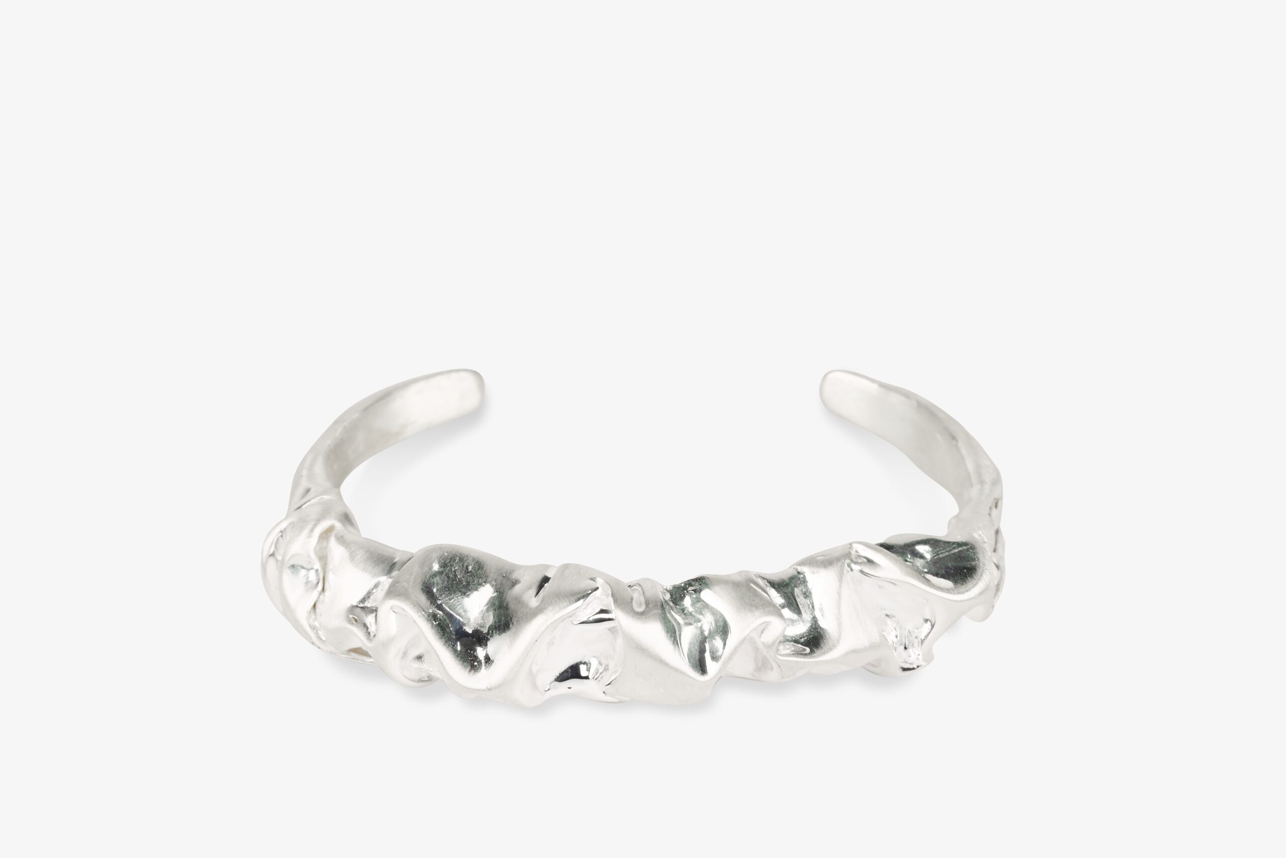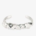 Crafted entirely from 925 sterling silver, this open cuff bracelet features fluid, sculptural surfaces created through traditional wax carving techniques. The polished silver finish enhances the natural contours of the design, allowing light to move effortlessly across its surface.