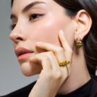 Handcrafted from 925 sterling silver and finished with black rhodium, these earrings are accented with 18k gold-plated details that emerge organically from the surface—evoking glowing lava flowing through hardened rock. The sculptural form is shaped using traditional wax carving techniques, allowing the material to develop naturally into layered, fluid contours.